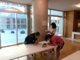 外国語の授業で、ビュッフェ体験をしました。ていねいな尋ね方や答え方をして、お客...