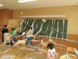 図画工作科で、細長い紙をつないだりつるしたりしながら、思いついたことを工夫して...