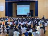 体育科の学習では、的当てゲームを行っています。子供たちは、たくさんクラッシュす...