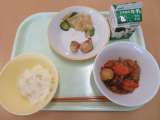 【今日の献立】 ごはん 牛乳 すぶた ほたてのこうみやき かふうあえ