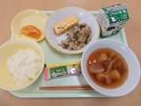 【今日の献立】 ごはん 牛乳 ちぐさやき れんこんきんぴら すりみじる なっとう...