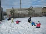 学年で雪遊びをしました。雪の上で寝っ転がったり、雪合戦をしたり、雪だるまをつく...