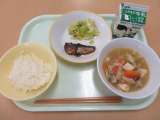 【今日の献立】 ごはん 牛乳 いわしのこんぶに あわせあえ はくさいなべ