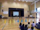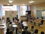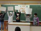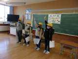 1年生の児童が、来年度本校に入学予定の子供たちへ学校の生活についてクイズ等を使...