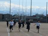 春らしい暖かい日差しの下、1年生として最後の体育の授業を行いました。美しい立山...