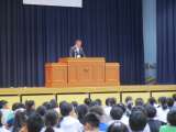 1学期終業式の様子 校長先生から、暮らしの3つのキーワード「よく聴く・ていねいに...
