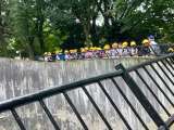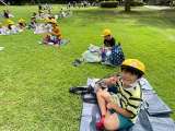 予定どおり、バスで出発しました。 「今日の弁当、好きなものばっかりだよ」「食べる...