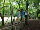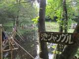 池遊びの様子です。池の上の一本道を歩いたり、ターザンロープで遊んだりしました。