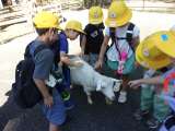 モルモットやヤギをやさしく触ったり、えさをあげたりしました。子供たちは「かわい...