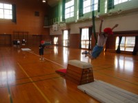 跳び箱を使っていろいろな跳び越え方をして楽しんでいます。最後まで協力して、片...