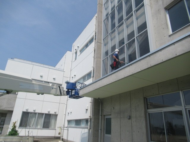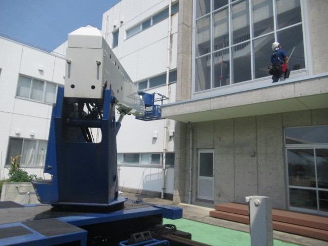 20日(水)、子供たちも教職員も掃除できない「高所の窓ガラス」をきれいにしていただきました。