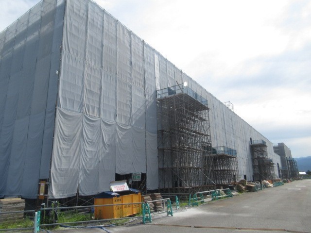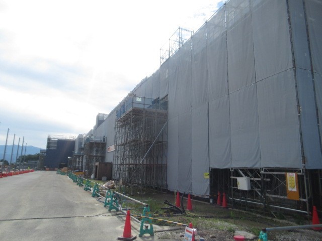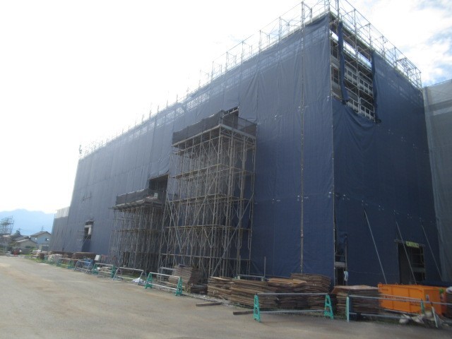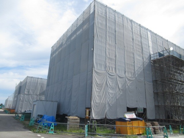 (左)南側の教室棟 (中左)東側の体育館(中右)西側(右)北側の管理棟
