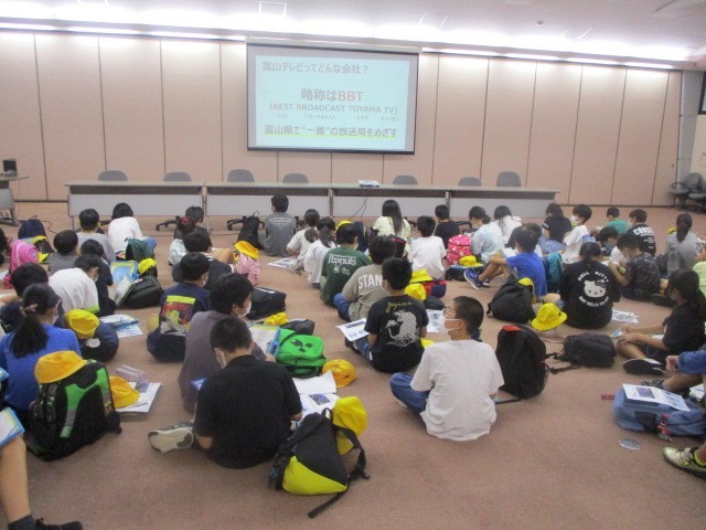 最初に大会議室で社員の方のお話を聞き、テレビ局の仕事について学びました。