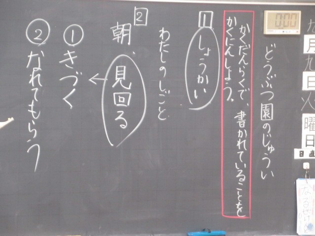 「どうぶつ園の じゅうい」の学習です。まず、大まかに読み取りをしていきます・・・