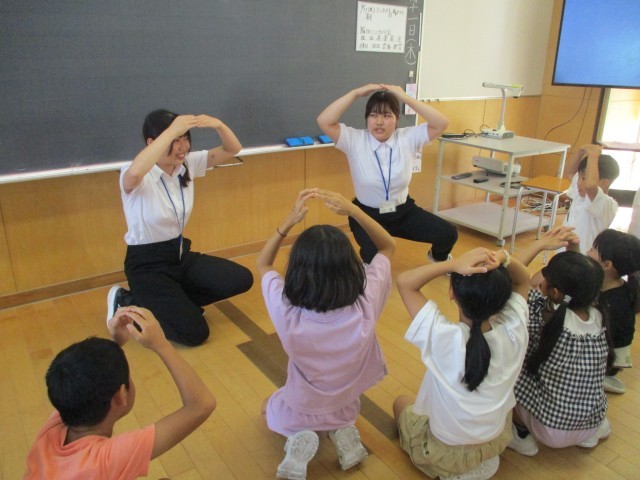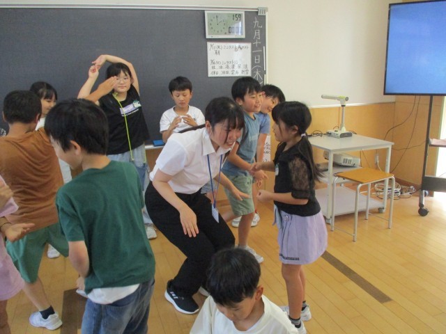 3年生は、学活の時間に、教育実習生の先生が考えた「進化ジャンケン」ゲームをしました。たまごからひよこに、ひよこからニワトリに、最後はケンタッキーに成長するゲームです。ジャンケンして、勝つと進化しますが、負けると戻ってしまうというゲームです。子供たちは、大笑いしながら夢中でゲームを楽しみました。