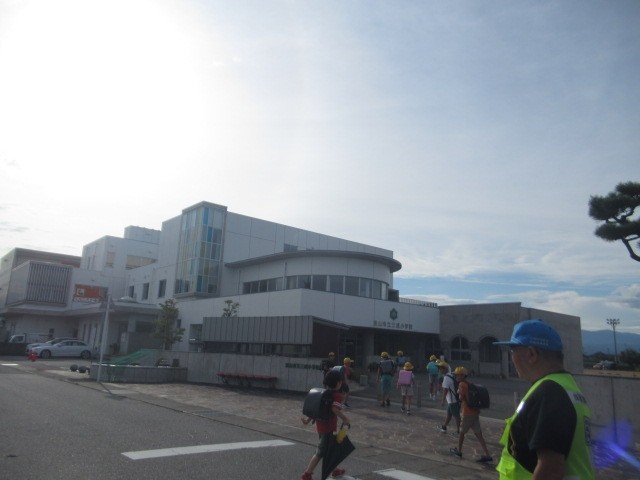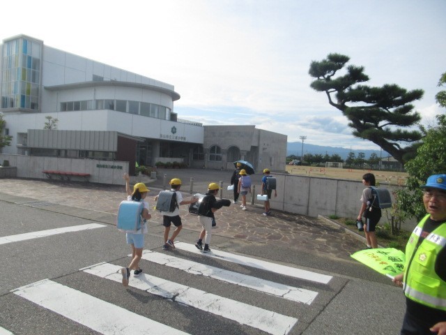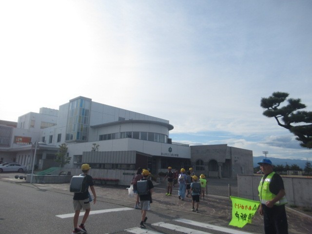 穏やかに晴れています。日なたは、まだまだ暑いです。がんばって登校しています・・・