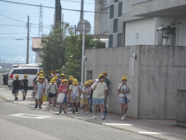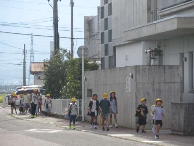 スクールバスは、数分早く到着しました。元気に登校しています・・・