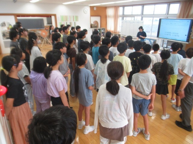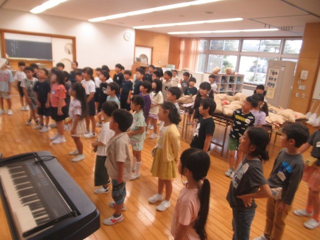 毎週木曜日の朝は、全校が歌声を響かせます。低・高学年はワークスペースで、中学年は各教室で歌声を響かせました。「閉校記念 学習発表会」(10/25)のフィナーレをお楽しみに! きっとステキな歌声を聞かせてくれることでしょう(笑顔)