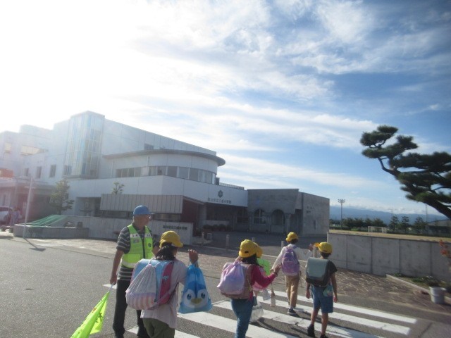 さわやかな秋空が広がっています。急に朝晩が寒くなりました。半袖の子に交じって「長袖」の子もいます。元気に登校しています・・・