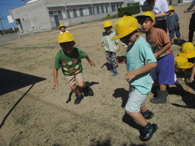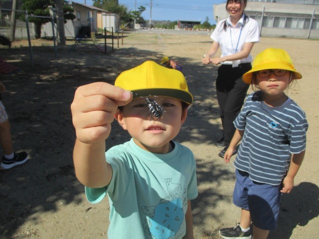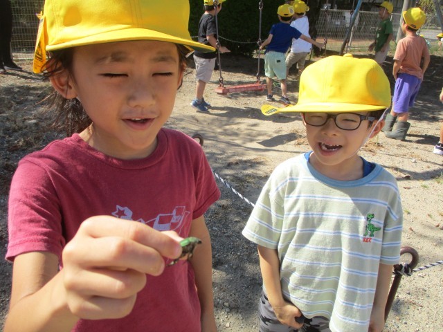 生活科の学習でグラウンドにいる生き物を探しに行きました。バッタやイナゴなど、たくさんの生き物を見つけました。