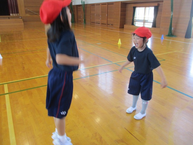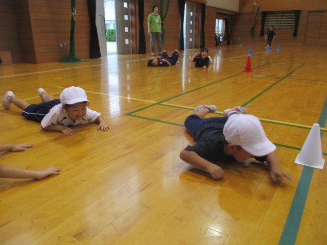 友達の動きを真似したり、動物になりきって体を動かしたりしました。自分で楽しい動きを考えたり、友達と同じ動きをしたりして楽しく過ごしました。