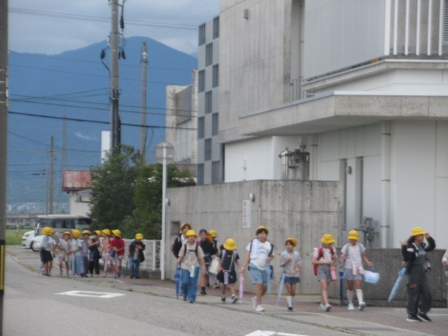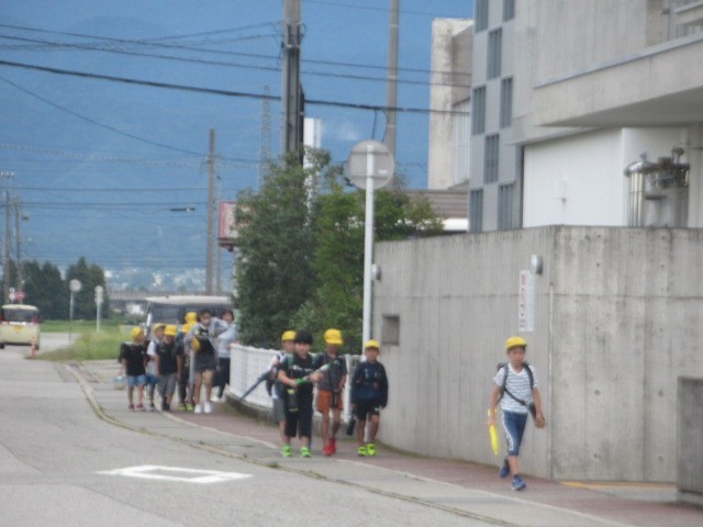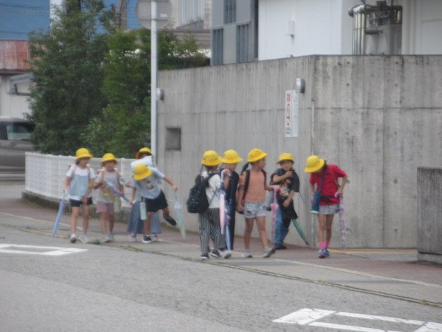 定時に到着しました。元気に登校しています・・・