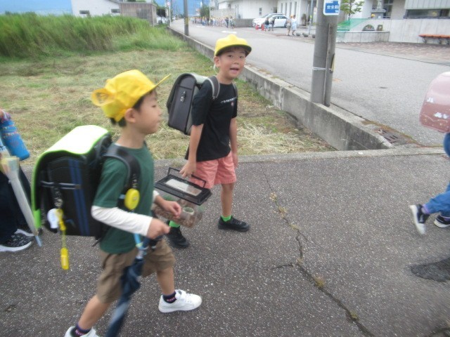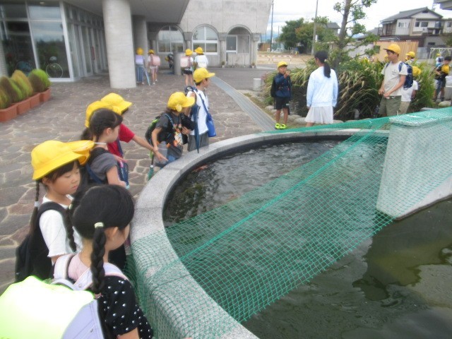 大事そうに虫かごを抱えてくる子、生き物を捕まえたり世話したりする子、鯉に餌(草)をあげる子・・・