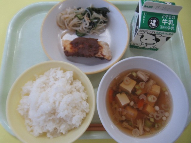 25日(木)今日の献立 公開日 2025/09/25 更新日 2025/09/25 給食室 ・ごはん ・牛乳 ・甘酢和え・ホキの甘みそかけ ・すまし汁※11時25分、検食終了。今日もおいしく出来上がっています。 1・2年生の「ホキの甘みそかけ」は、少し小さめ(-10gで40g)となっています。3・4年生は、お弁当です。