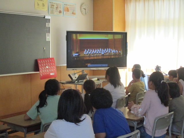 3・4年生は、音楽会の映像を一緒に見て、感想を伝え合いました。3年生からは、「4年生の歌声が鈴のように響いていて素敵だった」、4年生からは、「3年生の振りの動きがそろっていて素敵だった」など、互いのよかったところを伝えるたくさんの感想が出ました。