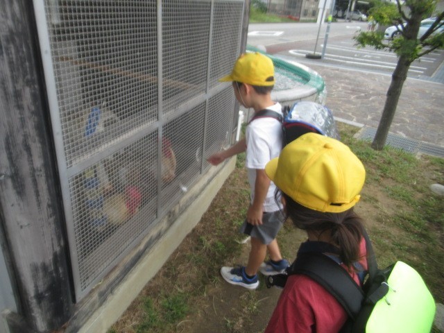 子供たちが近づくと、「ぴよ」「ぴよりん」が近寄ってきます。お互いに、怖くないようですね(笑顔)