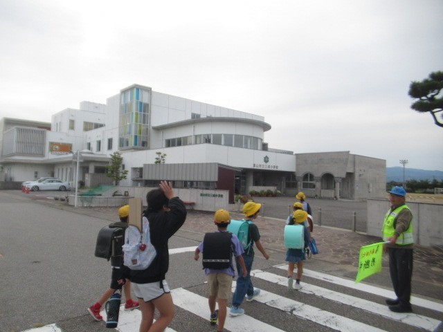 曇り空が広がり、肌寒い朝となりました。元気に登校しています。子供たちの「長袖」「半袖」が半々くらいです・・・