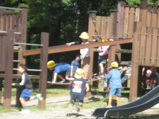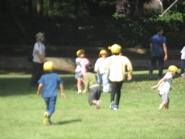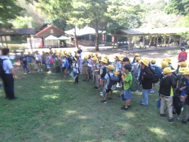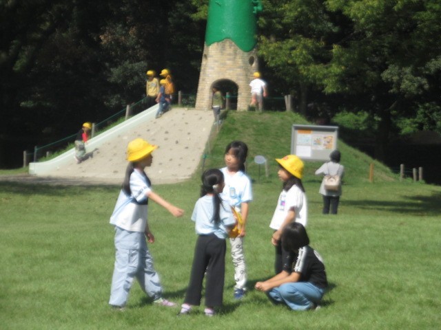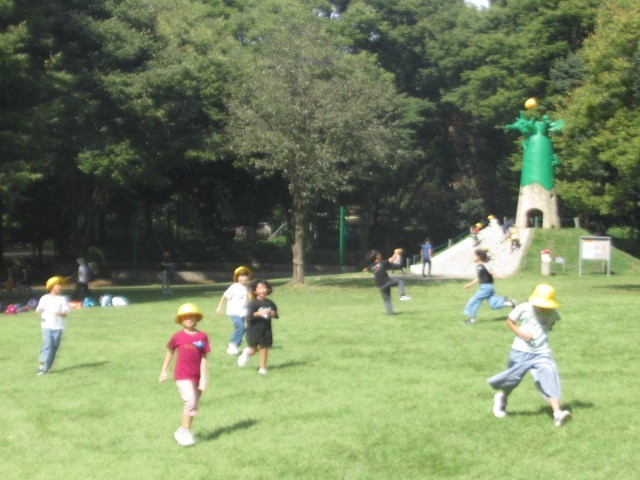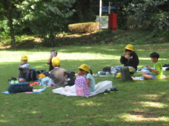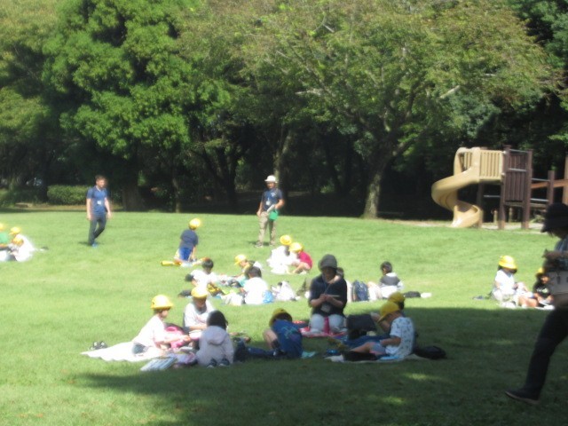 青空の下、芝生広場でお弁当を「いっただっきまーす!」