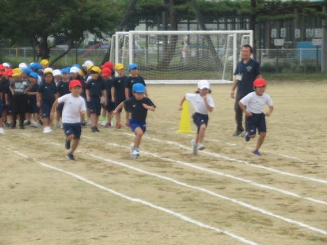暑い、暑い夏が終了しました。グラウンドで思いっきり体を動かしました。低学年は「30m走」・・・