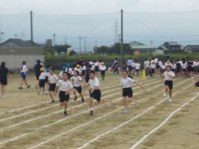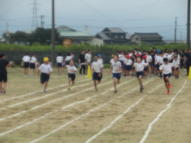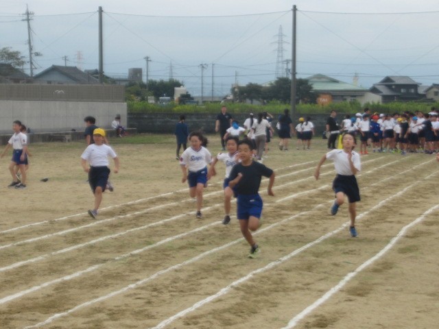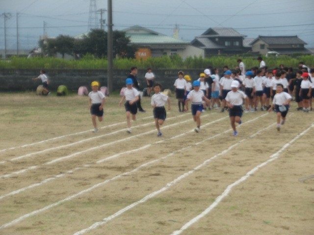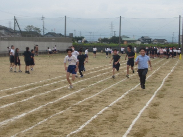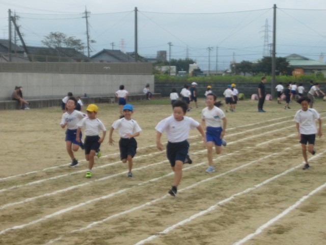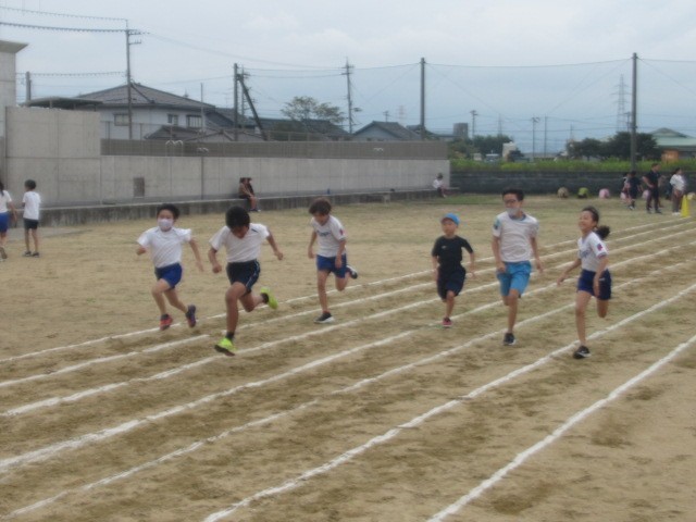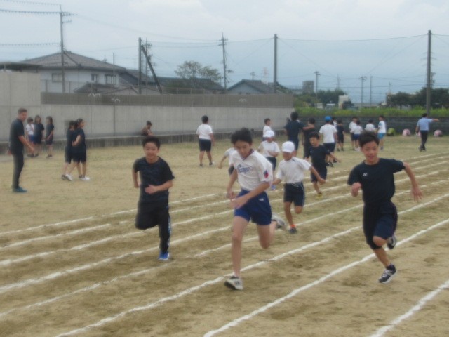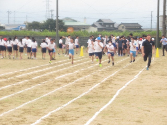 中・高学年は「50m走」。担任の先生やイマージョンALTとも競争です・・・
