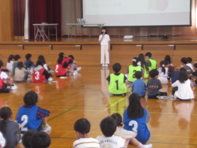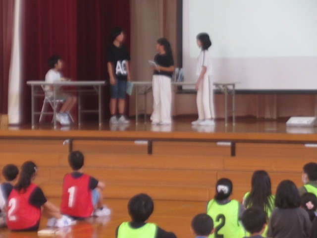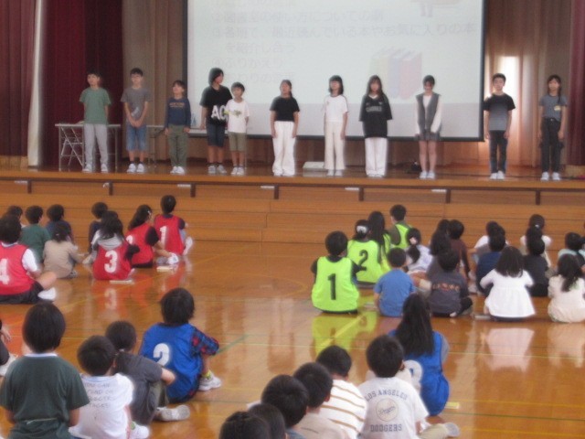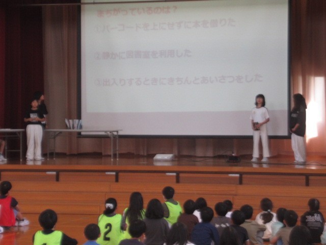 図書委員の皆さんが、図書室の使い方などについて分かりやすく教えてくれました(拍手)