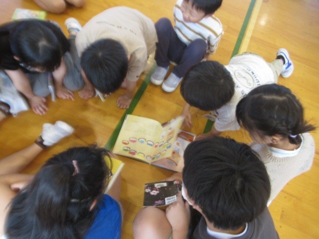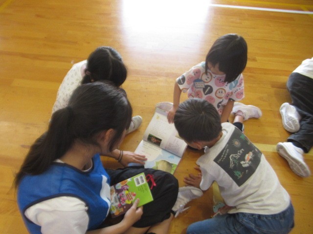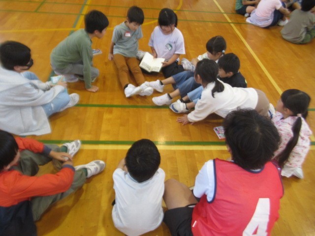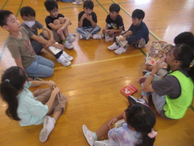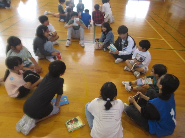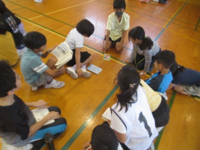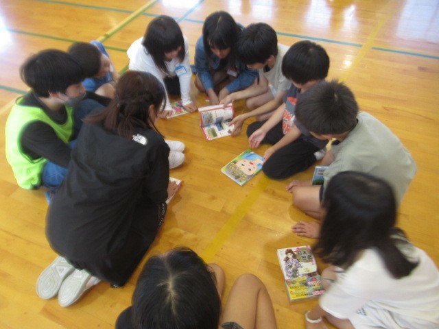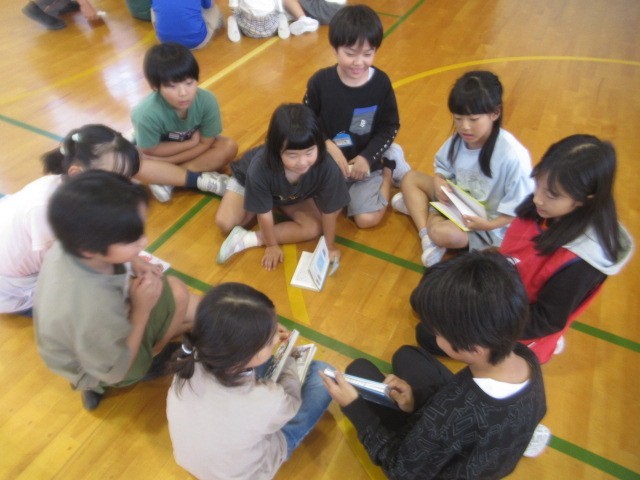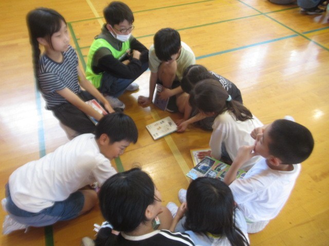 日頃、5限目前の「読書タイム」で読んでいる本、自分の好きな本などを、なかよし班で紹介し合いました。興味津々・・・