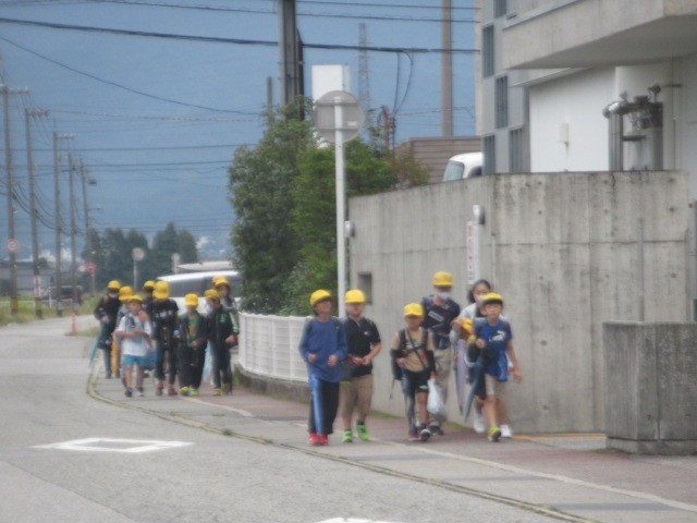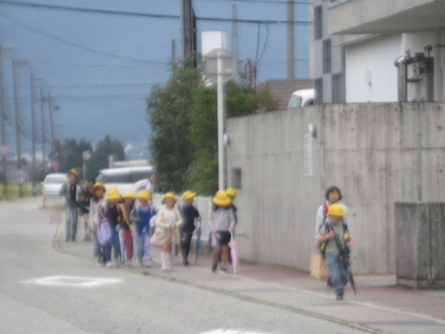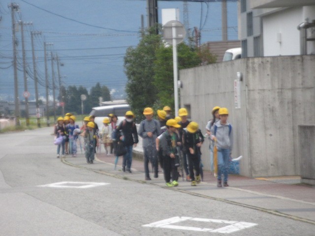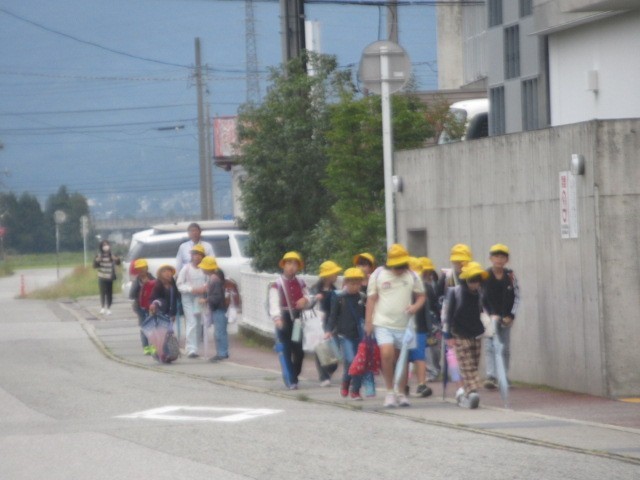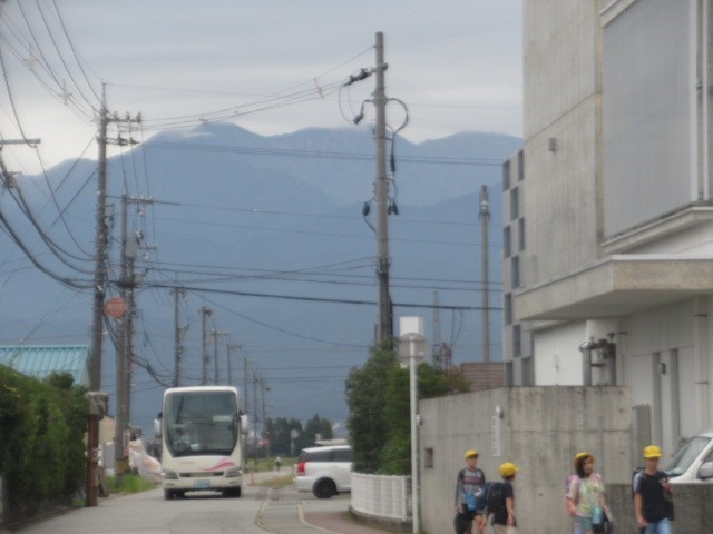 山の稜線がくっきりと見える朝です。バスは定刻より数分早く到着しました。欠席者が多くなりがちな3連休明け、元気に登校しています・・・