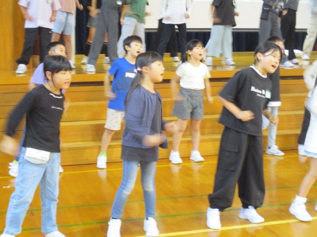 3,4年生は、区域の音楽会終了後に、学習発表会に向けてダンスの演技を追加しました。曲は、子供たちが大好きな「ライラック」です。練習を重ねるたびに、動きがそろってきて、ノリノリで踊っています。歌声もさらに一つになって響いています。日に日に上達している演技や歌声を家族や地域の方々に届けようと、練習に集中して自信をもって取り組んでいる子供たちです。