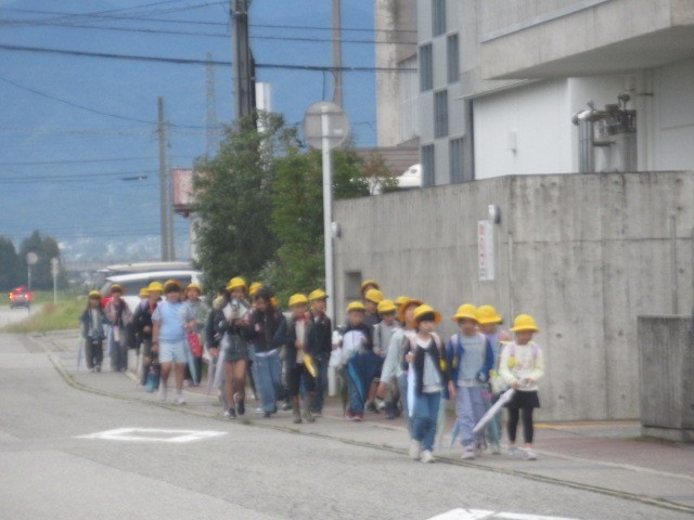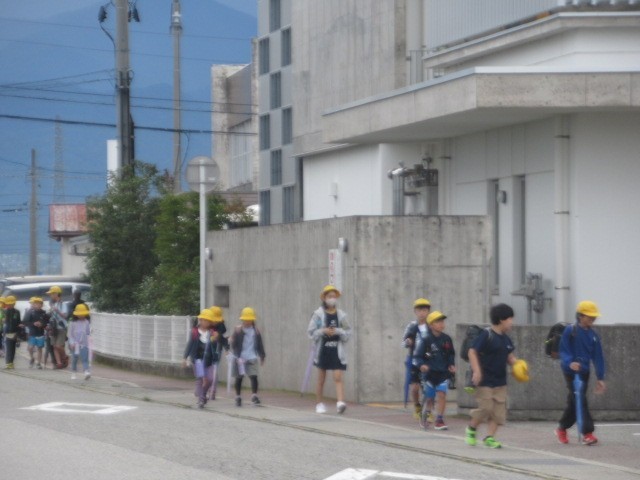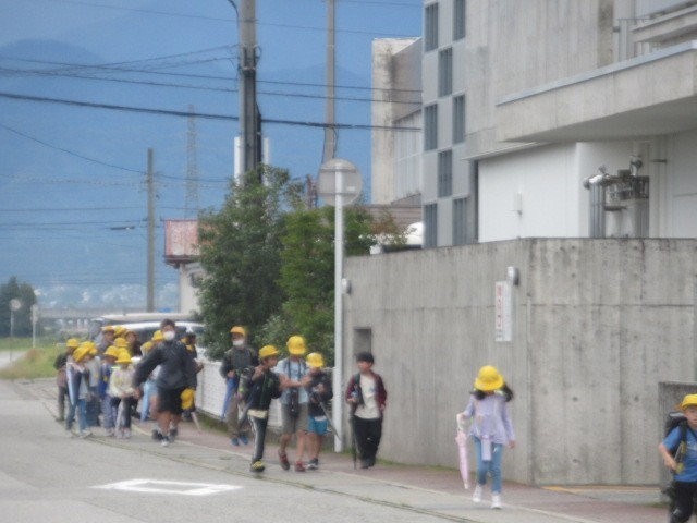 定刻より数分遅れて到着しました。元気に登校しています・・・