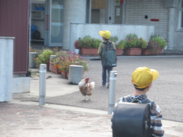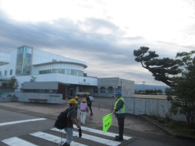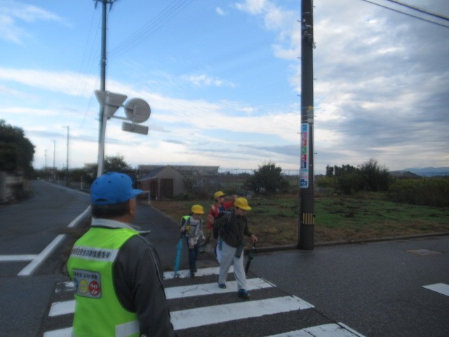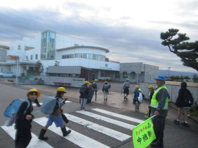 どんよりした曇り空ですが、次第に晴れてきそうです。元気に登校しています・・・