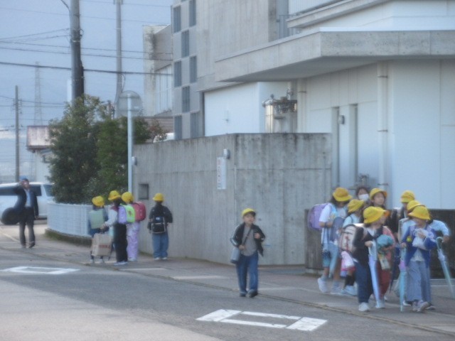 定刻より少し遅く到着しました。休日明けですが、元気に登校しています・・・