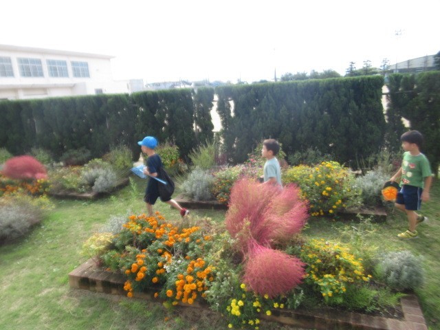 紅葉したコキア(ホウキギ、ほうきぐさ)が見頃を迎える中、虫取りや鬼ごっこに夢中になる子供たち・・・(笑顔)