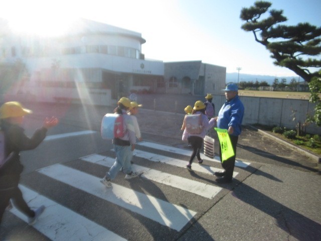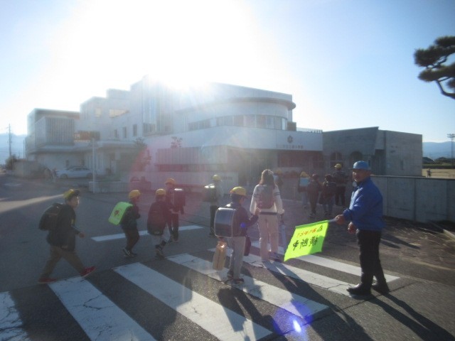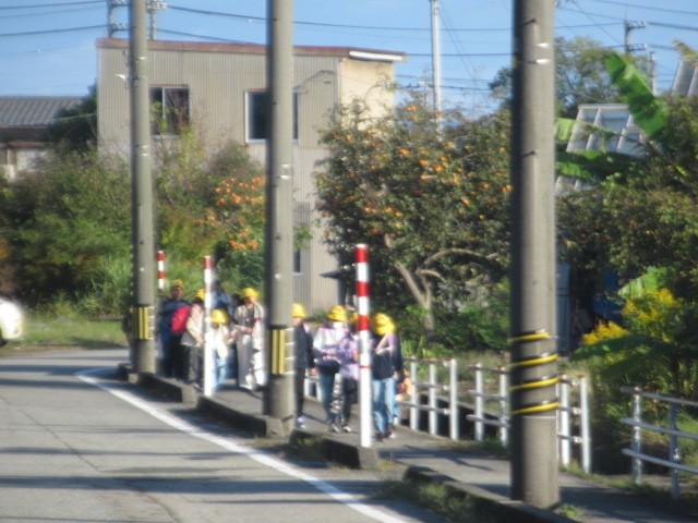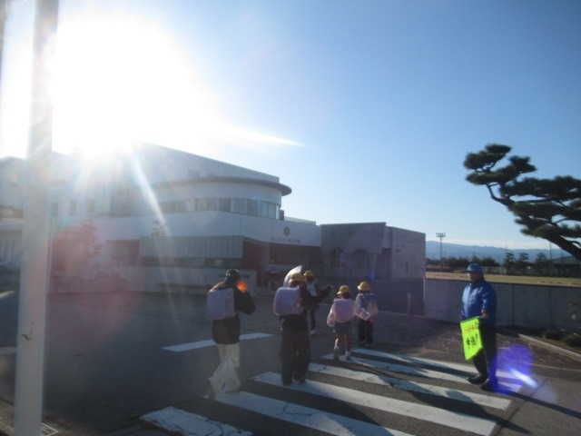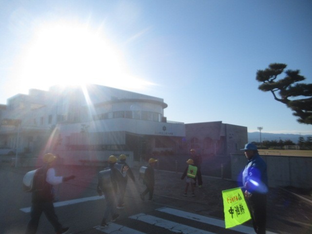 光きらめく朝です(画像が逆光となりますが、あえてそのままにしてあります)。元気に登校しています・・・