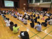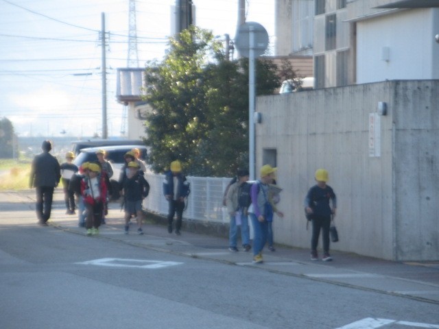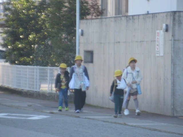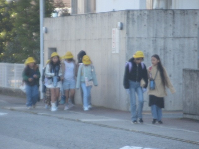今日も立山連峰の稜線がくっきりと見えます。バスは定刻よりも数分早く到着しました。元気に登校しています・・・