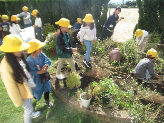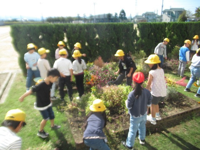 富山市で “最もステキな学校花壇” に選ばれた「三成っ子花だん」。およそ半年間、私たちの目と心を楽しませてくれました。この花壇で、鬼ごっこをしたり虫取りをしたりしていた子も、たくさんいましたね。「ありがとう」の気持ちをもちつつ、植え替えの準備をしました・・・