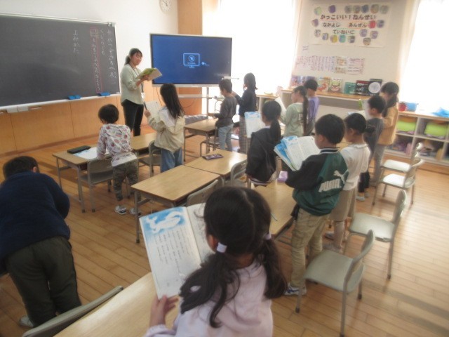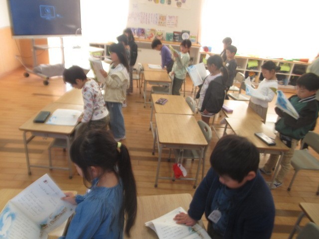 「くじらぐも」を学習しています。まずは「音読」から・・・特に、低学年は、国語科の教材文を覚えてしまうくらい、毎日、何回も、音読(声に出して読む)ことが大切だと言われています。ご家庭でも、楽しみながら音読を聞いたり、一緒に読んだりしてあげてください。
