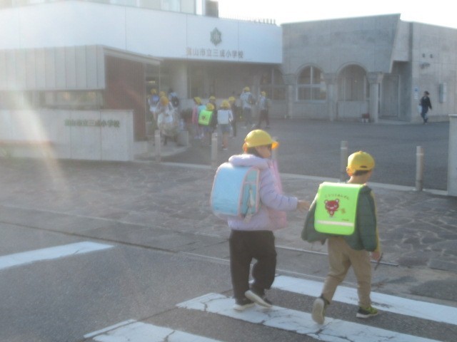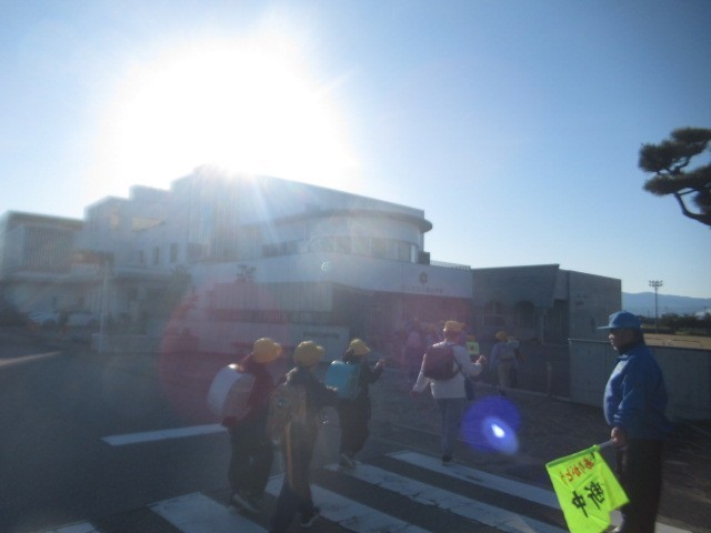 今日も朝日がまぶしいです。元気に登校しています・・・