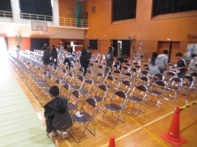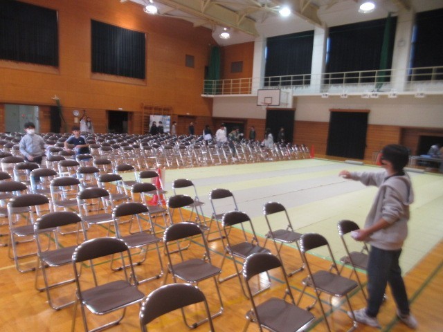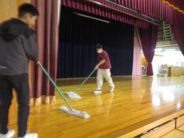 「椅子の座面も、きれいにするよ」「ステージをぴかぴかにしよう」「椅子がちょっと、ずれているよ」など、一生懸命です。明日の、最後の学習発表会に向けて・・・気合が入っていることが、ひしひしと伝わってきます!