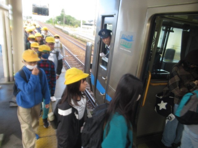 水橋駅で一緒になった水橋中部小・水橋西部小・水橋東部小のみんなと、あいの風とやま鉄道で富山駅、そしてオーバード・ホールへ・・・