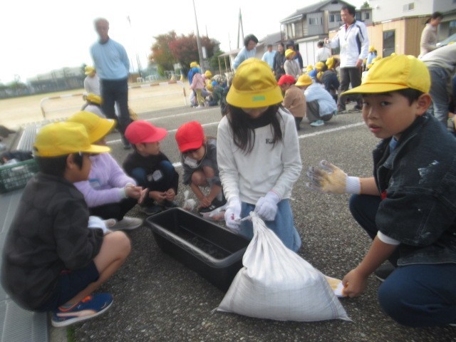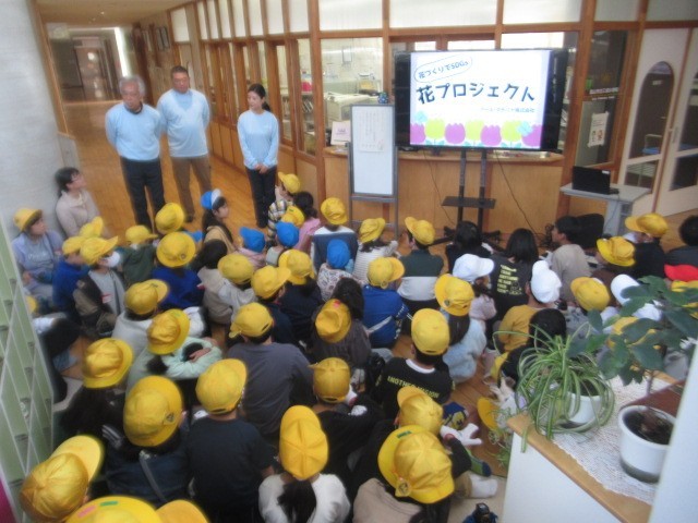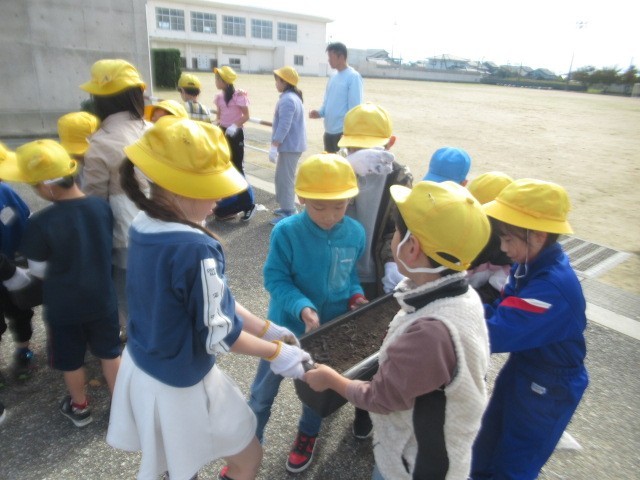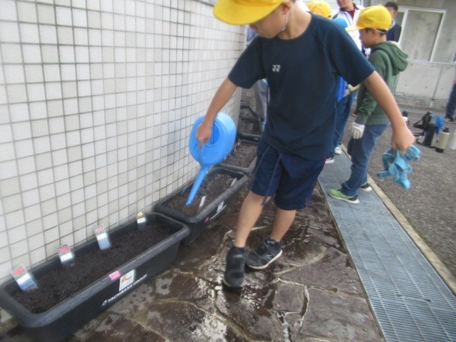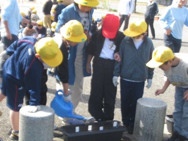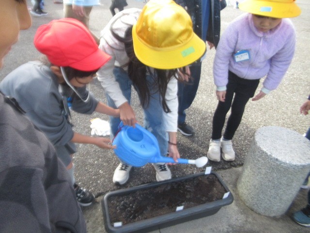 1・2・4年生は「花プロジェクト」。4年生がリーダーになって、プランタにチューリップ球根を植えました・・・